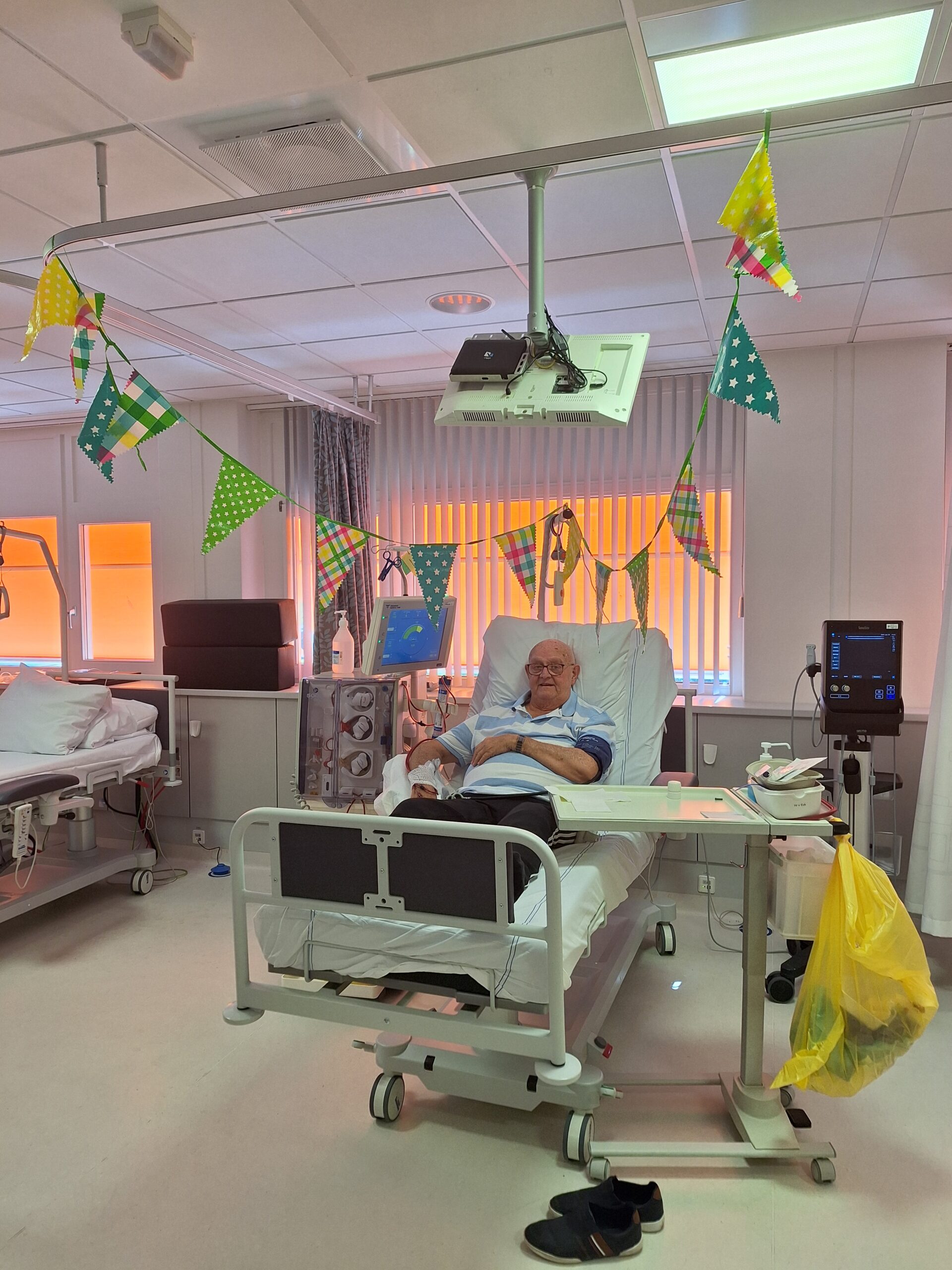 “Vorig jaar is er een foto van mij gemaakt toen ik 77 werd, midden op de afdeling tijdens de dialyse. De ruimte was prachtig versierd en het is een mooie herinnering aan mijn verjaardag op de afdeling.”