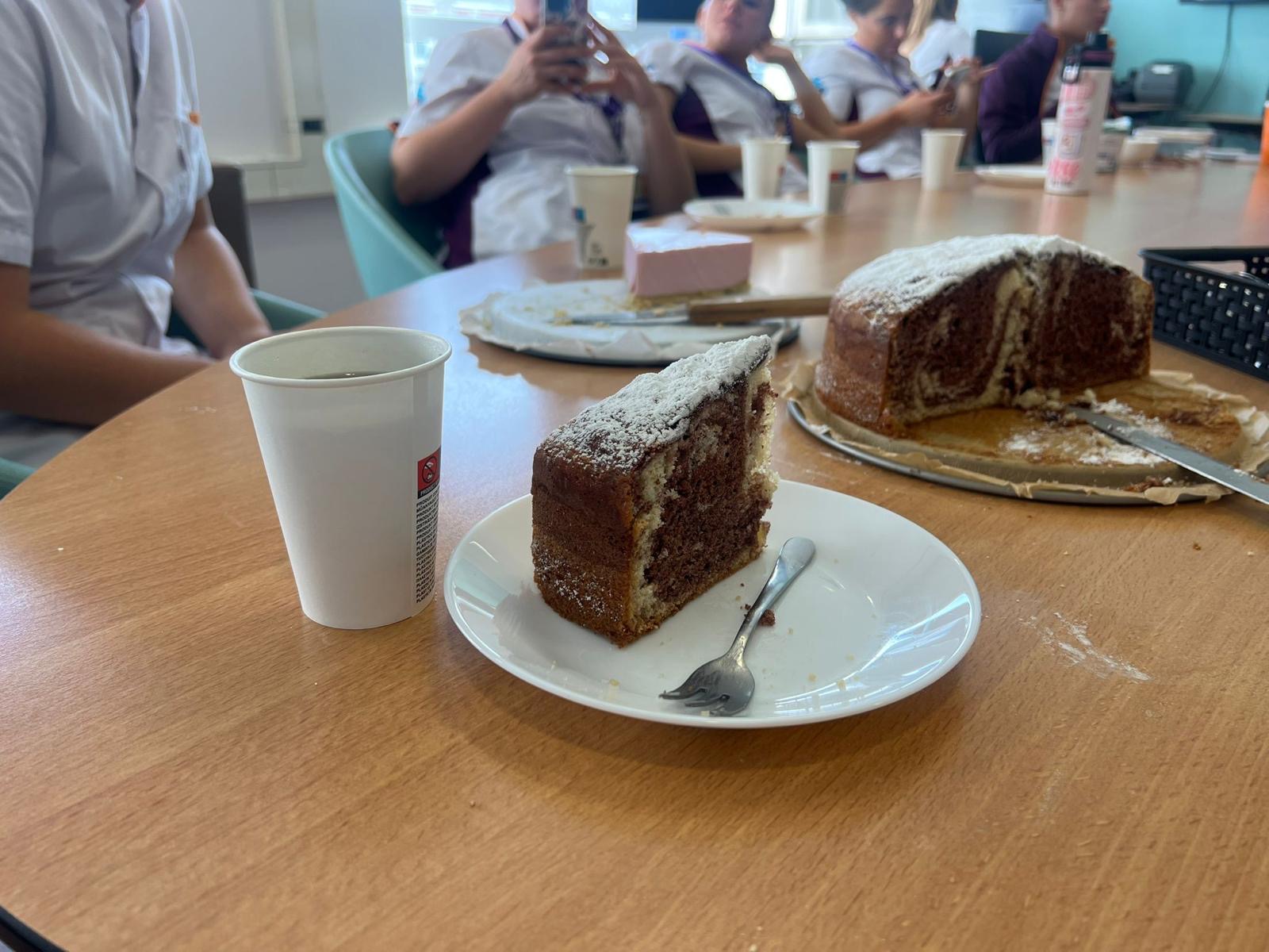 Tijd voor een bakkie! Vandaag met een lekker stukje taart erbij. Even bijtanken na de drukke ochtendspits, voordat ik weer door ga.
